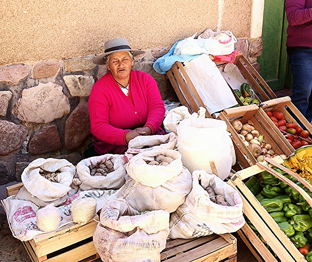 市場は 昔鉄道の線路であっただろう所だった。今は 南米はもう 長距離バスが主で・・列車は全然走っていない・・。